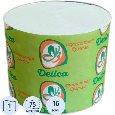 Бумага туалетная Delica Макси 1 слой 75 метров без втулки 16 рул/уп