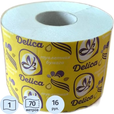 Бумага туалетная Delica Макси 1 слой 70 метров на втулке 16 рул/уп