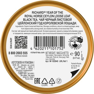 Чай Richard Year of the Royal Horse крупнолистовой черный, 90г НГ