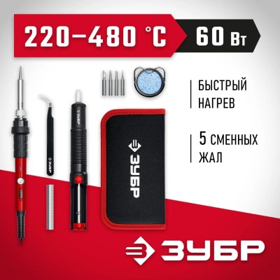 Паяльная станция мини в сумке-чехле ЗУБР ПСМ-60,11-в-1,60 Вт,55337