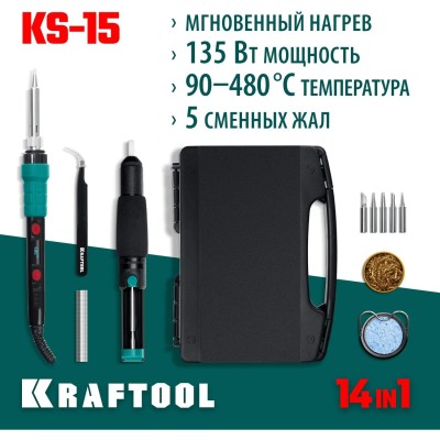 Паяльная станция мини цифровая в кейсе KRAFTOOL KS-15,90-480C,135Вт,55346
