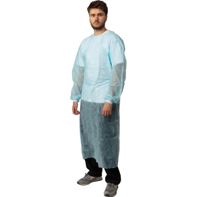 Халат н/с , на завязк, рук.манж, дл.110см, XL, пл 20, голуб, 10 шт/уп