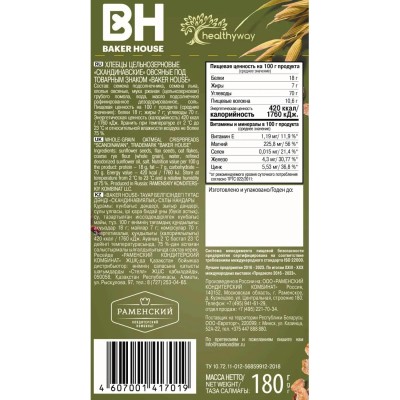 Хлебцы цельнозерновые Baker House Скандинавскик овсяные, 180г