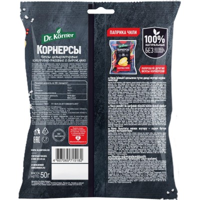 Чипсы Dr.Korner цельноз. кукурузно-рисовые с сыром начо, 50г