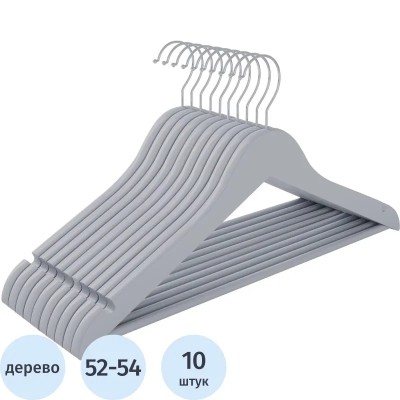 Вешалка-плечики DF_CLH-232 дерево/металл, 10шт/уп L-445мм, р.52-54, серый
