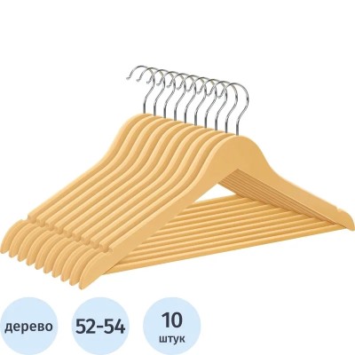 Вешалка-плечики DF_CLH-218 дер/мет. 10 шт/уп L-445 мм р.52-54, натуральный
