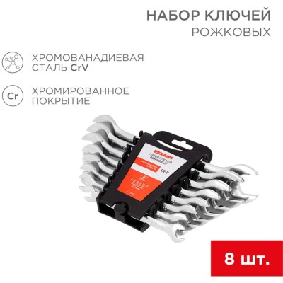 Набор ключей рожковых 8 шт 8-24мм, CrV, зеркальн. хромир. REXANT 12-5844