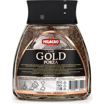 Кофе Milagro Gold Forza растворимый, стеклянная банка, 180г