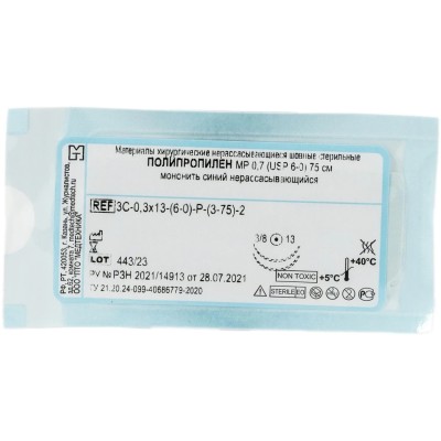 Шовный материал ПОЛИПРОПИЛЕН 6/0 МР 0,7 с игл.4D-0,3x13(3-75)75см 20шт/у