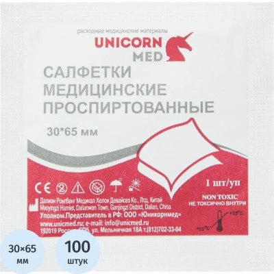 Салфетка спиртовая, антисептическая, этил. сп. 30х65мм SOYUZ 100шт/уп
