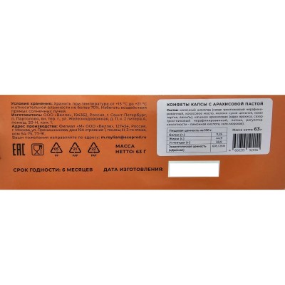 Конфеты КАПСЫ шоколадные с арахисовой пастой, 63г