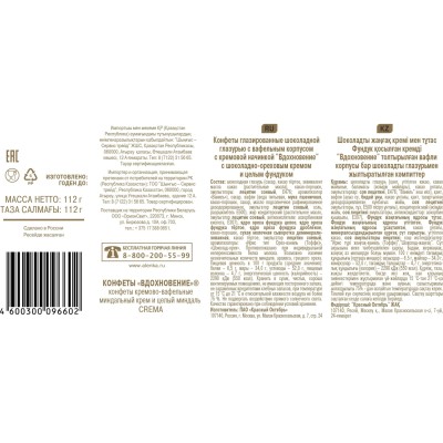 Конфеты Вдохновение с шок.орех.кремом и цел. Фундуком, 112г