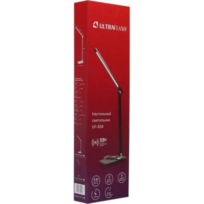 Светильник Ultraflash UF-834 C02 черн (Led настол, 8Вт, 5 ССТ, ночник, Зар)