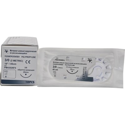 Шовный материал ПОЛИПРОПИЛЕН 3/0, обр-реж. 26 мм, 3/8, 45 см уп/12 шт