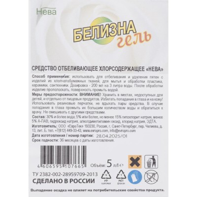 Отбеливатель Белизна Нева-ГЕЛЬ 5 л ПНД <5
