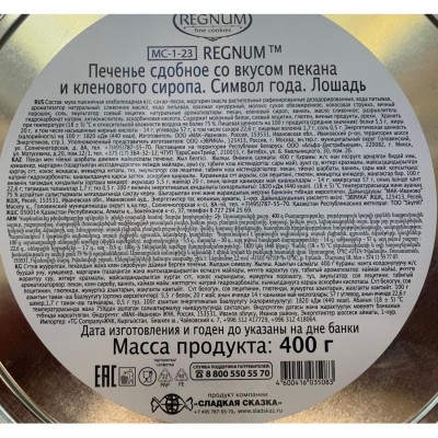 Печенье Regnum Cимвол Года Лошадь сдобное пекан с кленовым сироп ж/б, 400г