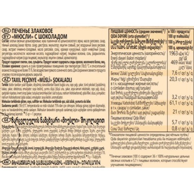 Печенье Любятово злаковое мюсли с шоколадом, 120г