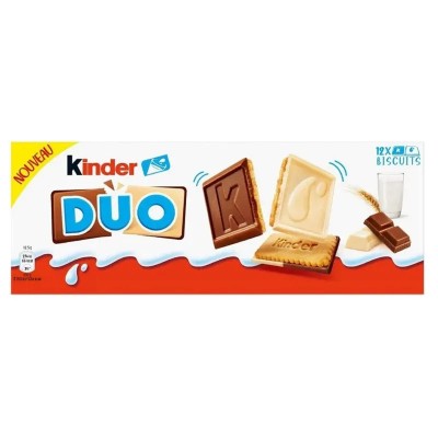Печенье Киндер Дуо покрытое молочным и белым шоколадо, 150г