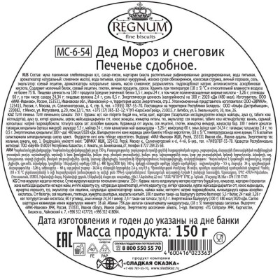 Печенье REGNUM Дед Мороз и Снеговик сдобное 150г 12шт/уп