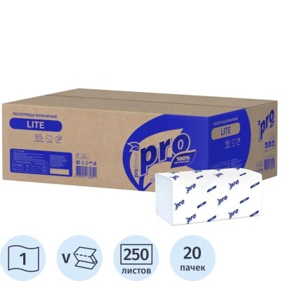 Полотенца бумажные V-сл, 22x21см, 20гр, 250л, 20пач/уп