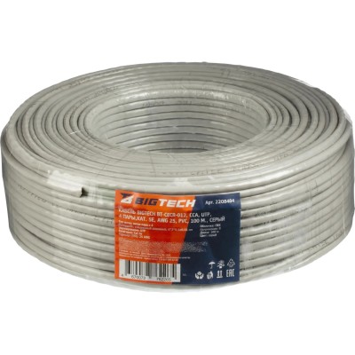 Кабель BigTech BT-CECR-012 CCA UTP 4 пары, кат.5e AWG25 PVC 100м сер