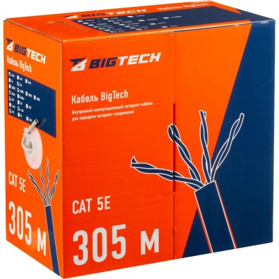 Кабель BigTech BT-CECR-009 медь UTP 4 пары, кат.5e AWG24 LSZH 305м оранж