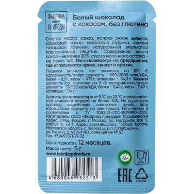 Шоколад Фабрика нашей природыс белый с кокосом, 20гx6шт/уп