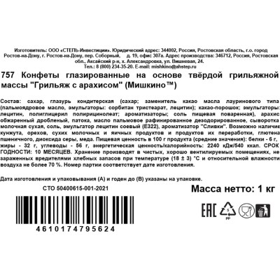Конфеты Мишкино Грильяж с арахисом глазированные, 1кг