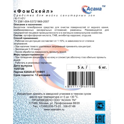 Профхим сантех кисл гель д/кмпл. Уборки Асана ТМ / ФомСкейл, 5л