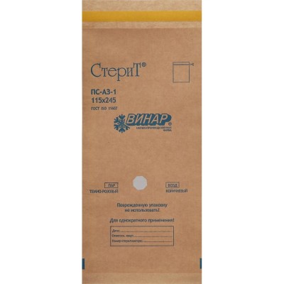 Крафт-пакет для стерилизации 115 х 245 мм самокл. 100 шт/уп СтериТ