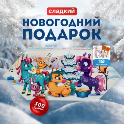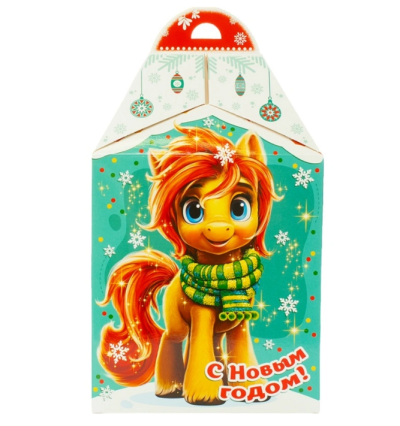 Новогодний сладкий подарок Озорные пони Картон 300 грамм, K045
