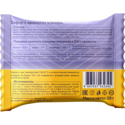 Зефир Лянеж Нева с ароматом клюквы, 28гx120шт/уп