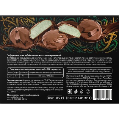 Зефир Нева со вкусом дубайского шоколада глазированный, 185г